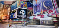 AIR BRUSHED with ACRYLIC on 18' muslin theater backdrop. TIMES SQUARE