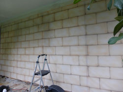 AIRBRUSHED with ACRYLIC on 18' muslin theater backdrop. NY STREET SCENE